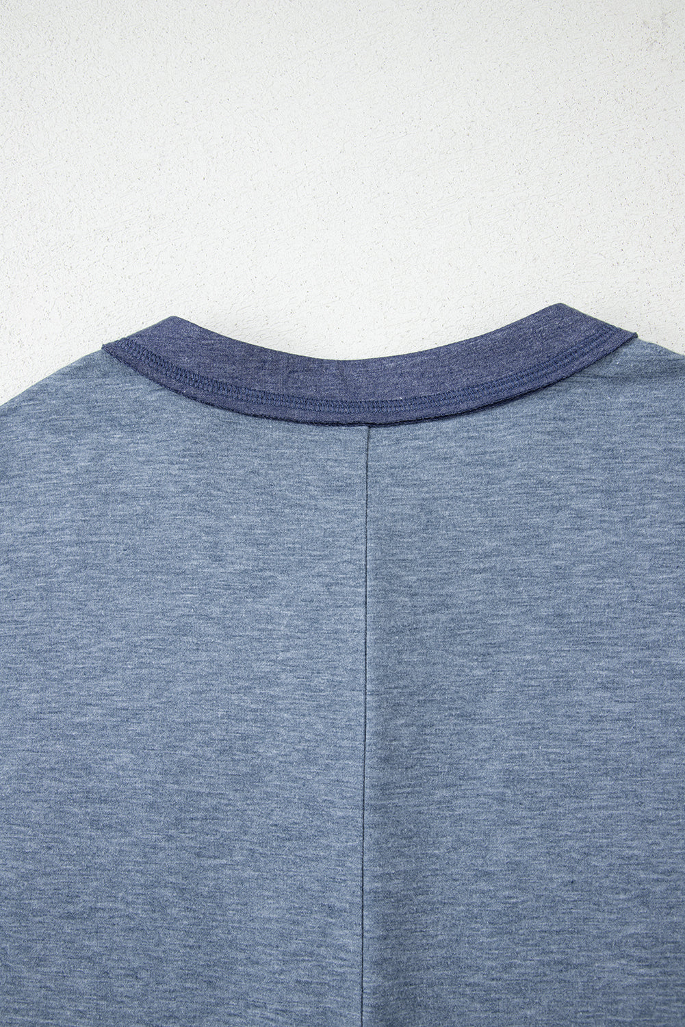 Beau Blue Half Placket Chest Pockets Short Sleeve Wide Leg Jumpsuit