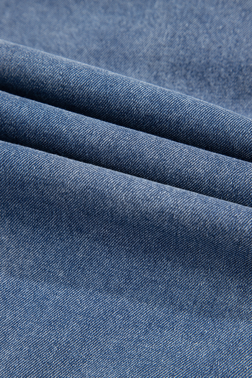 Dusk Blue Ruffled Collared Side Pockets Puff Sleeve Denim Mini Dress