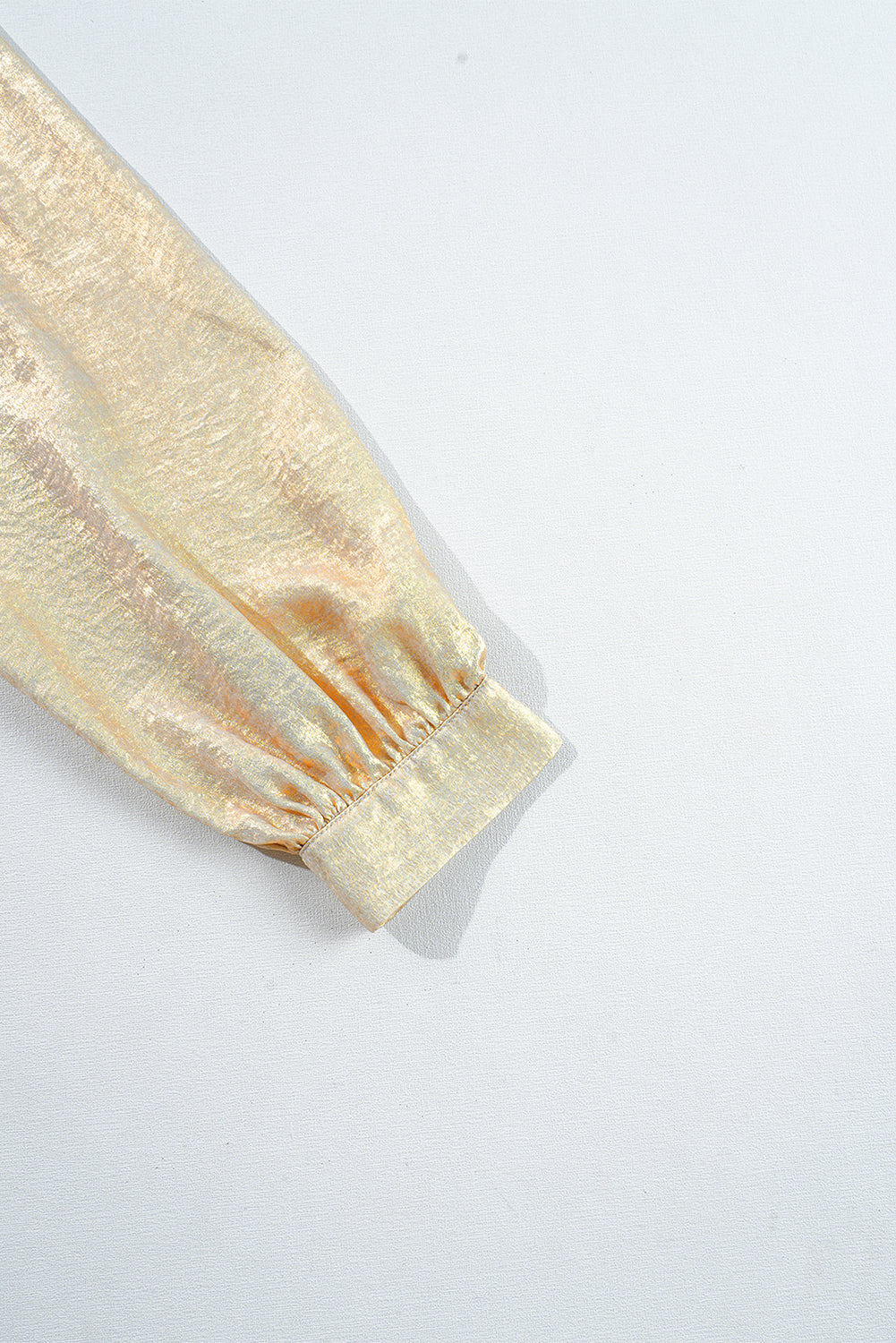 Gold Metallic Frilled V Neck Puff Sleeve Babydoll Blouse