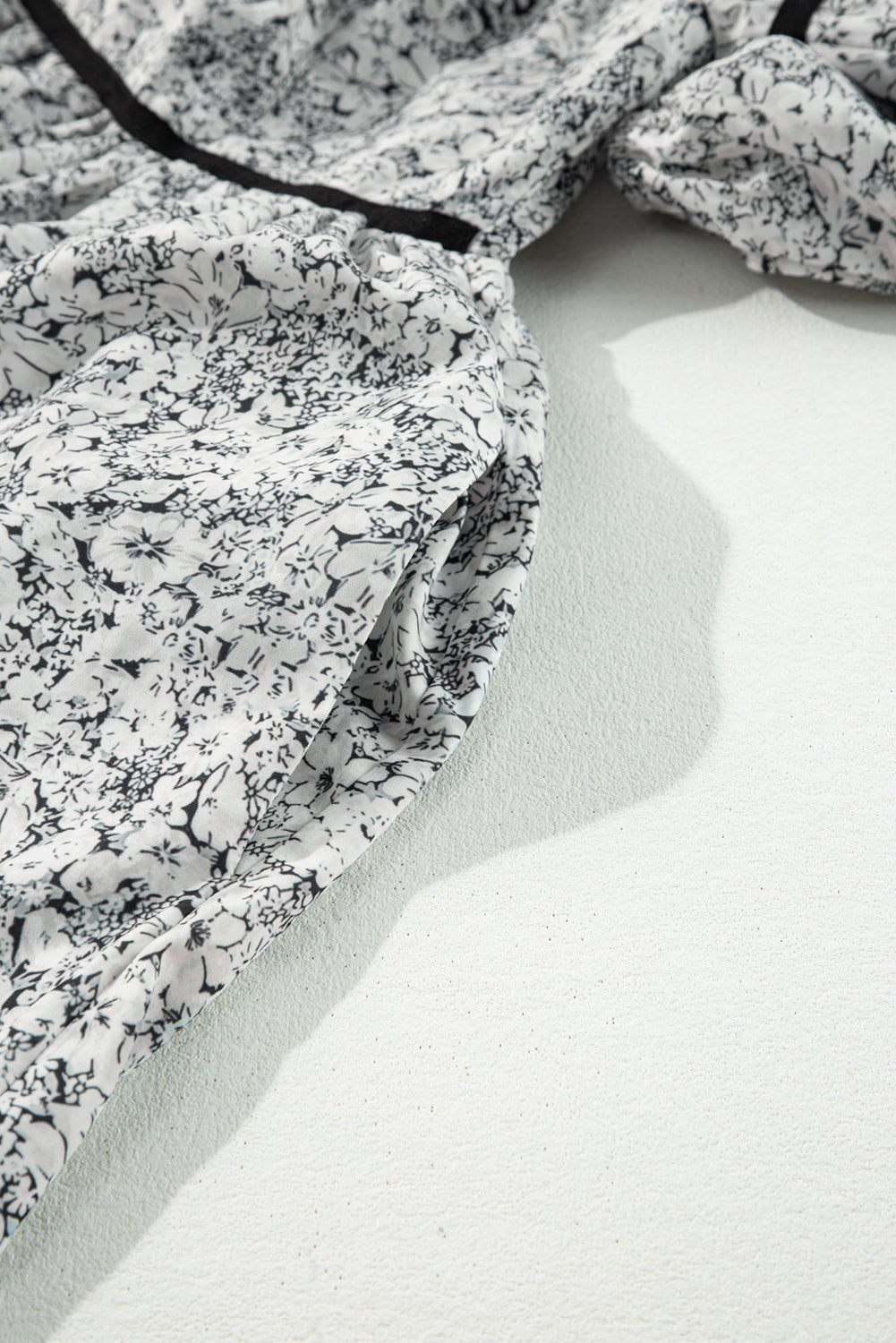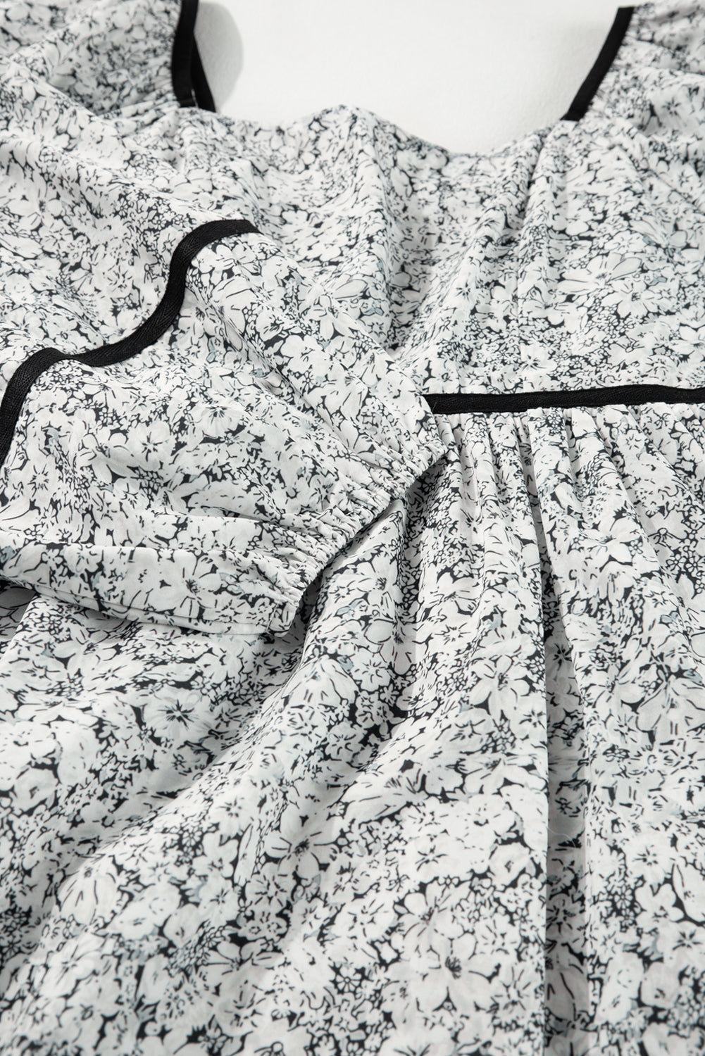 Gray Floral Print Open Back Balloon Sleeve Square Neck Mini Dress