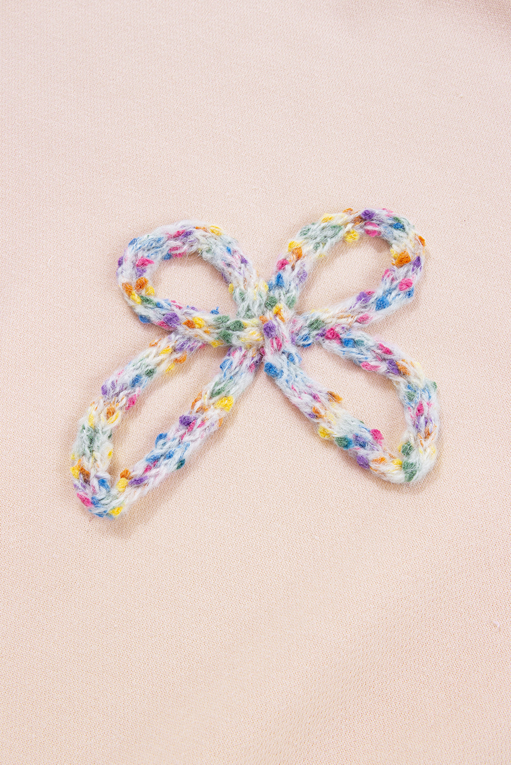 Parchment Embroidered Bow Lantern Sleeve Oversized Pullover Sweatshirt